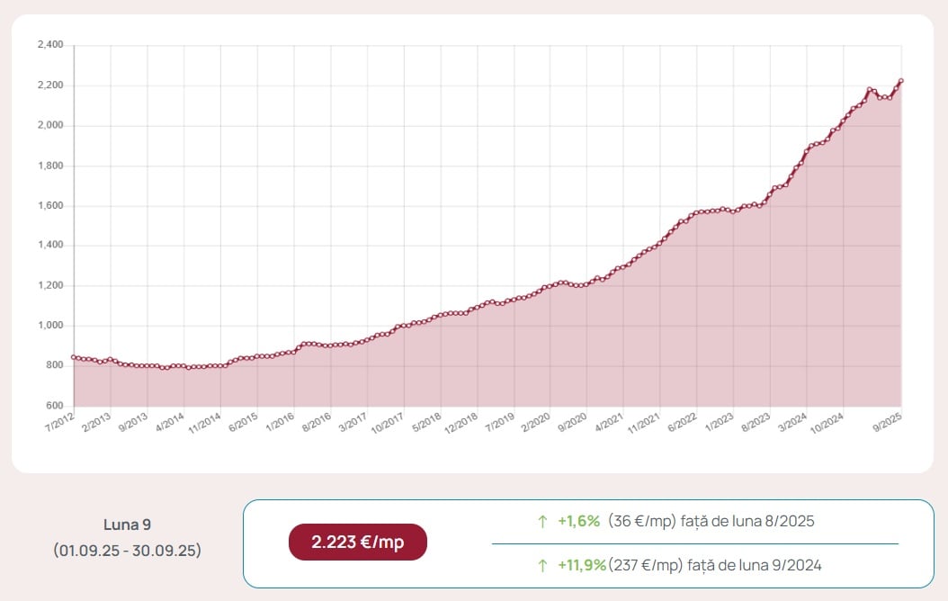 Potrivit Indicelui Imobiliare.ro, prețul mediu solicitat pentru apartamentele din Brașov scoase la vânzare de proprietari și dezvoltatori a ajuns la 2.223 euro/mp util până la finele lunii trecute. Astfel, într-un an locuințele s-au scumpit cu 12% în orașul de la poalele Tâmpei. Spre comparație, prețurile apartamentelor din Cluj-Napoca s-au majorat în același interval de timp cu 9%, iar cele aferente proprietăților din Timișoara cu 11%.