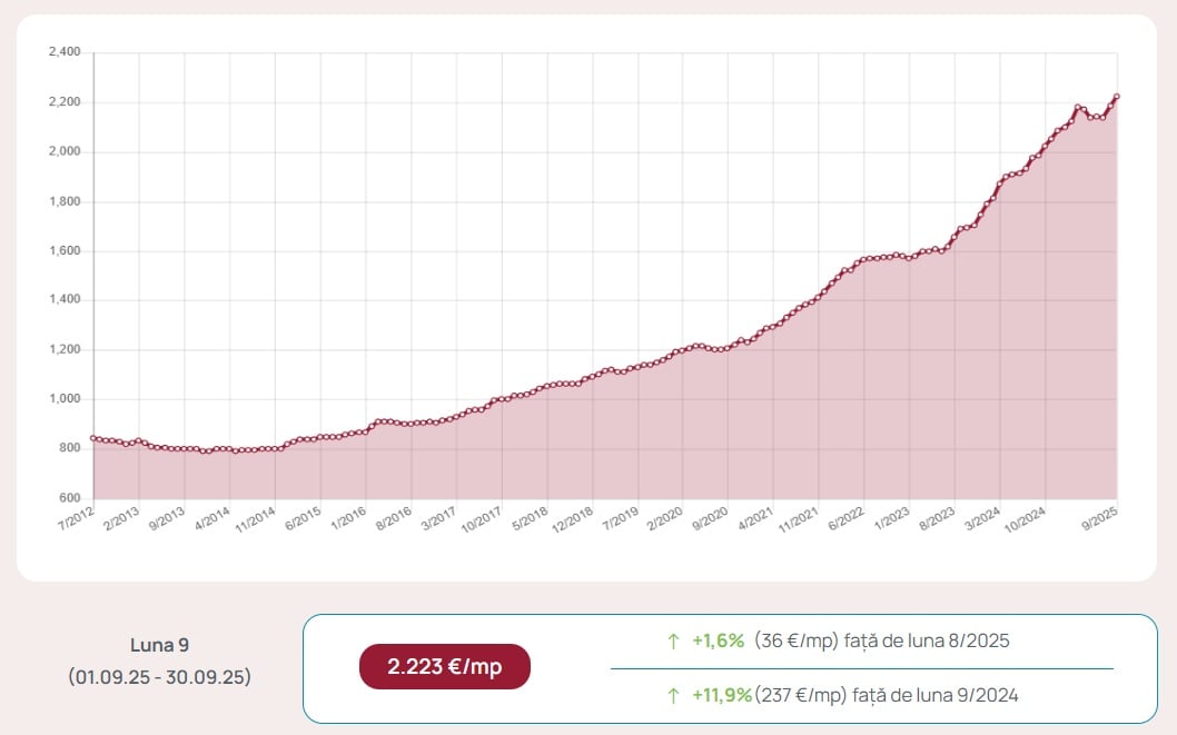 Prețul mediu solicitat pentru apartamentele scoase la vânzare în Sibiu a ajuns, totodată, conform Indicelui Imobiliare.ro, la 1.908 euro/mp util, după un avans cu 11% în ultimul an.