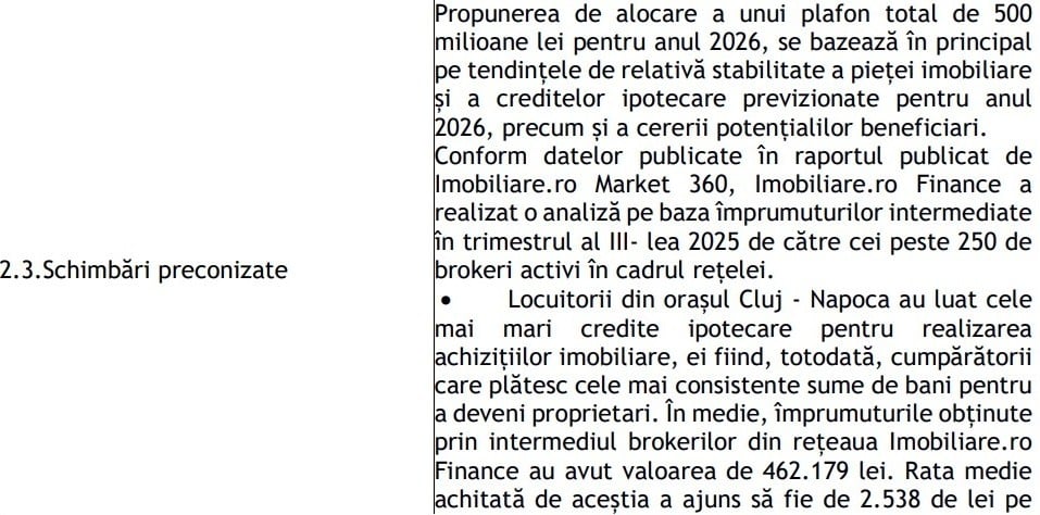 “Propunem continuarea programului Noua Casă și în anul 2026, cu alocarea unui plafon de 500 de milioane de lei, astfel încât să fie evitate distorsiunile în piață și riscul apariției unor reacții speculative sau de panică, contribuind la menținerea unui echilibru funcțional între cerere și ofertă”, se menționează în nota de fundamentare a proiectului de hotărâre care vizează implementarea programului.